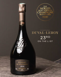 a Maison Duval-Leroy continúa consolidando su posicionamiento en el sector del Champagne internacional. La casa ha escalado 12 posiciones en el ranking “The World's Most Admired Champagne Brands 2026”, elaborado por la publicación especializada Drinks International, alcanzando el puesto 23 a nivel mundial.